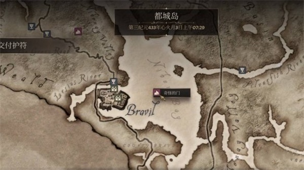 2、可以前往布拉维尔附近,它在地图右侧中间位置。