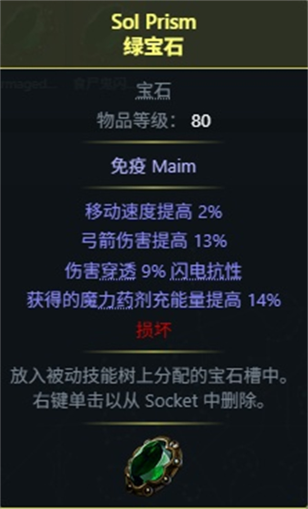珠宝方面推荐绿色珠宝,词条可以选择移动速度提升、弓箭伤害提升、闪电穿透、闪电伤害。