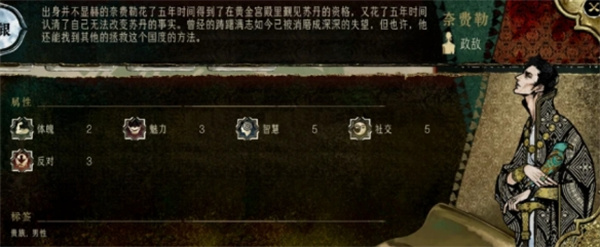 1、奈费勒是苏丹的游戏中的政敌,会出现很多的任务。