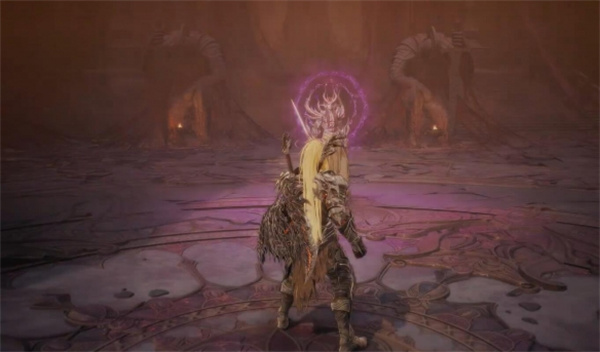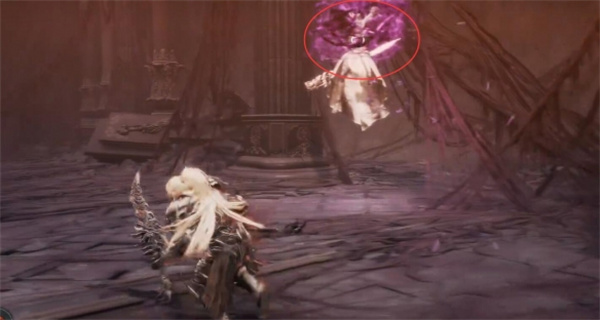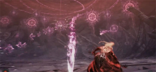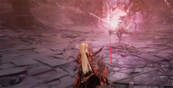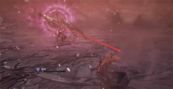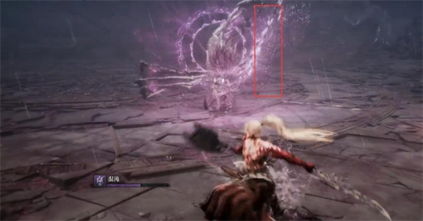 2、抬手出现紫光的时候向前移动,boss会朝最开始玩家待的地方投掷武器;