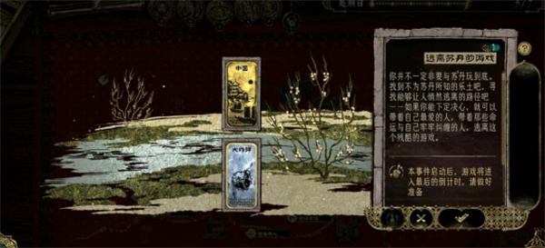 在卡牌策略角色扮演游戏苏丹的游戏中,玩家可以达成许多不同的结局,其中部分玩家不知道逃往中国结局应该怎么达成,下面就为大家带来苏丹的游戏中逃往中国结局的达成方法分享,有需要的玩家可以参考。