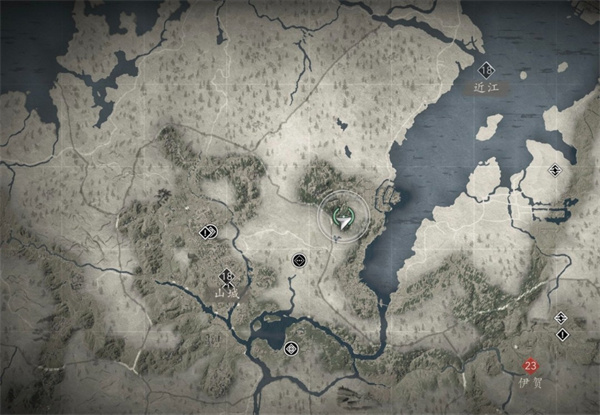 近江小叶空地上面,坂本左下的加治宫墓园附近,用观察机制看,在石头后面。(一号标点)