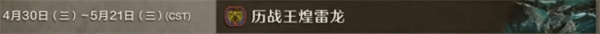 2、本次历战王煌雷龙的活动将会在2025年的4月30日开始,持续到5月21日。