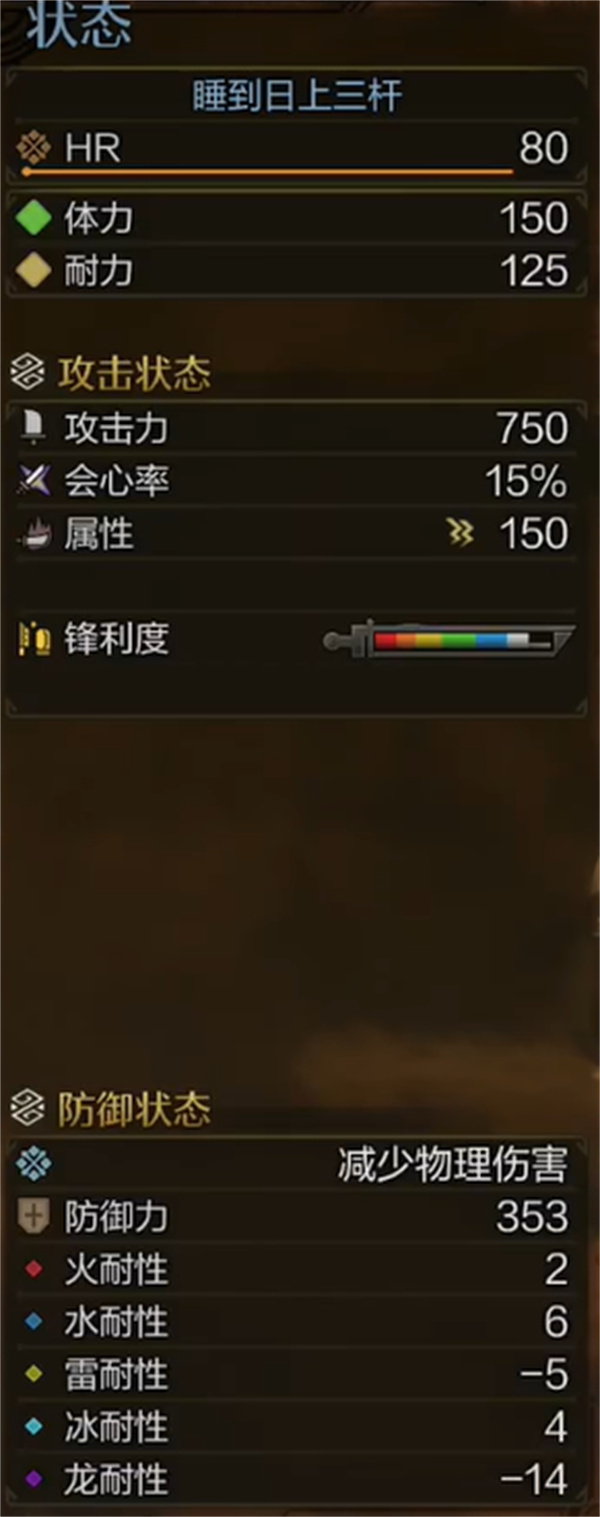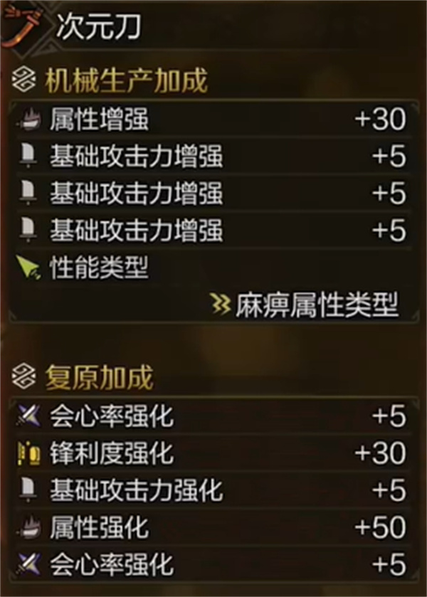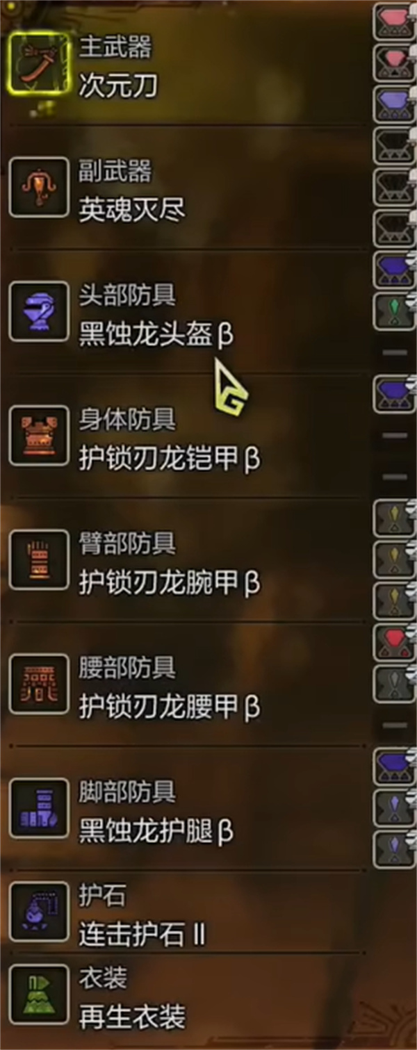 武器:次元刀,麻痹属性1攻击、2会心。