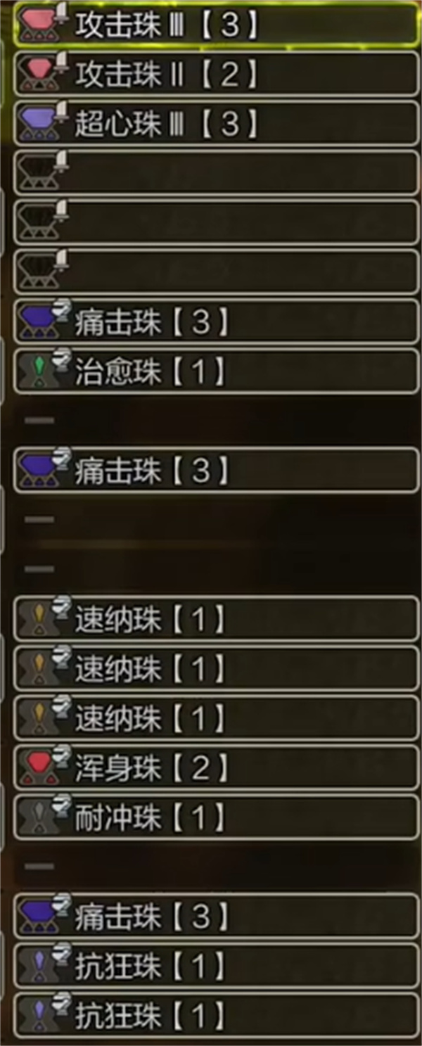 头部:痛击珠【3】、治愈珠【1】
