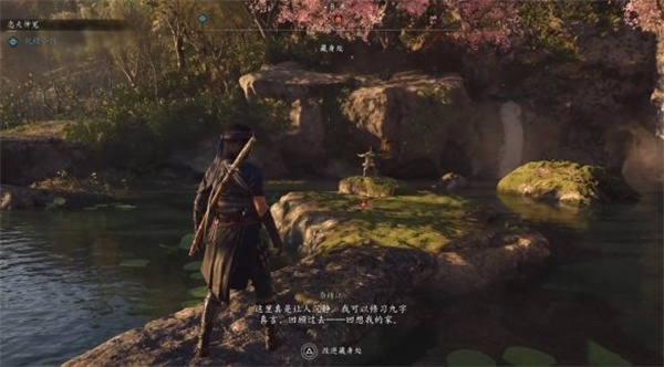 我们在藏身处东边的水池内,可以发现一个九字真言的收集点。