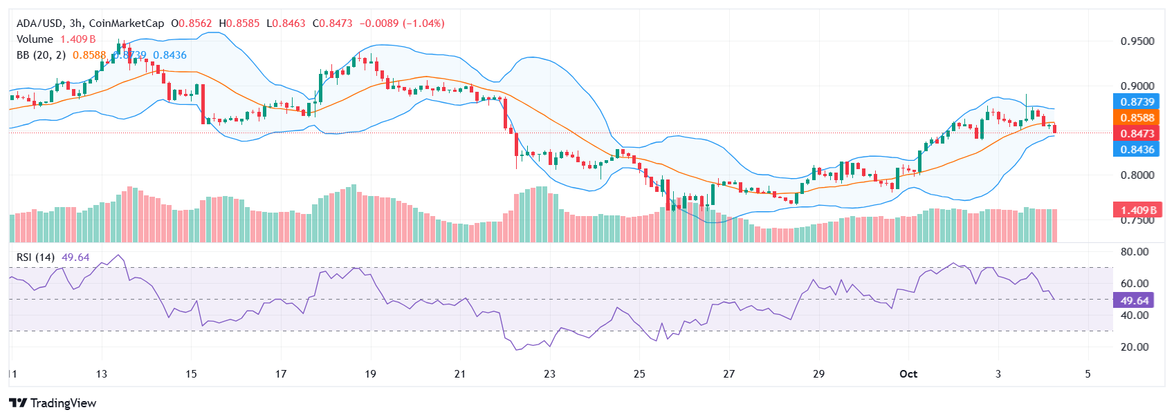 尽管SEC仍可能最终批准,部分市场参与者已开始抛售持仓。这影响了卡尔达诺在加密市场的价格前景。截至撰稿时,ADA现报0.8460美元,24小时跌幅1.43%。