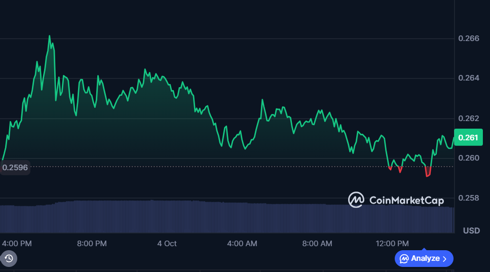 Pi Network过去24小时在0.2596-0.266美元区间震荡,最终收于0.261美元。该形态虽略显看跌,但在支撑位附近展现出强劲防守。买家始终将价格控制在0.259美元上方,有效阻止进一步下跌。