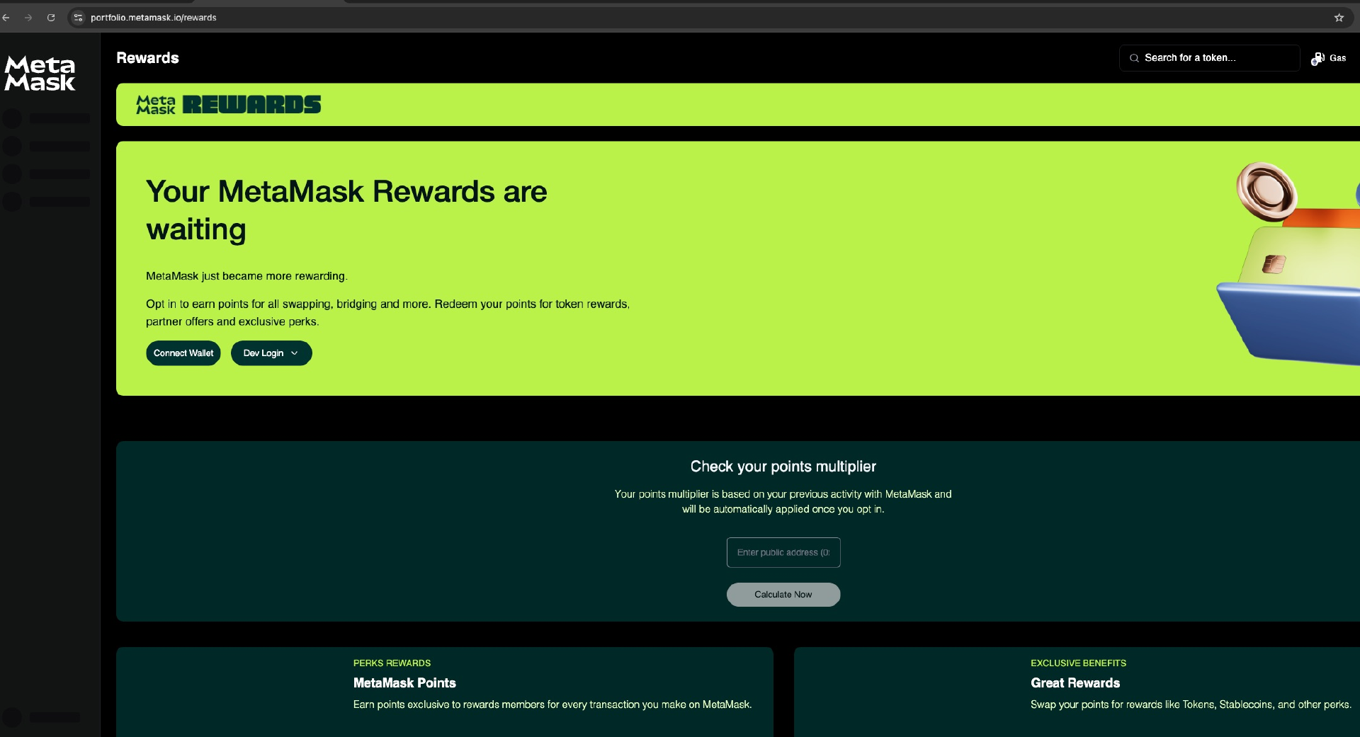 至于 OG 用户...我们始终关注着你们。长期使用 MetaMask 的用户不会被忽视——他们将获得专属权益,且 MetaMask 奖励计划与未来的 MetaMask 代币将产生深度关联。