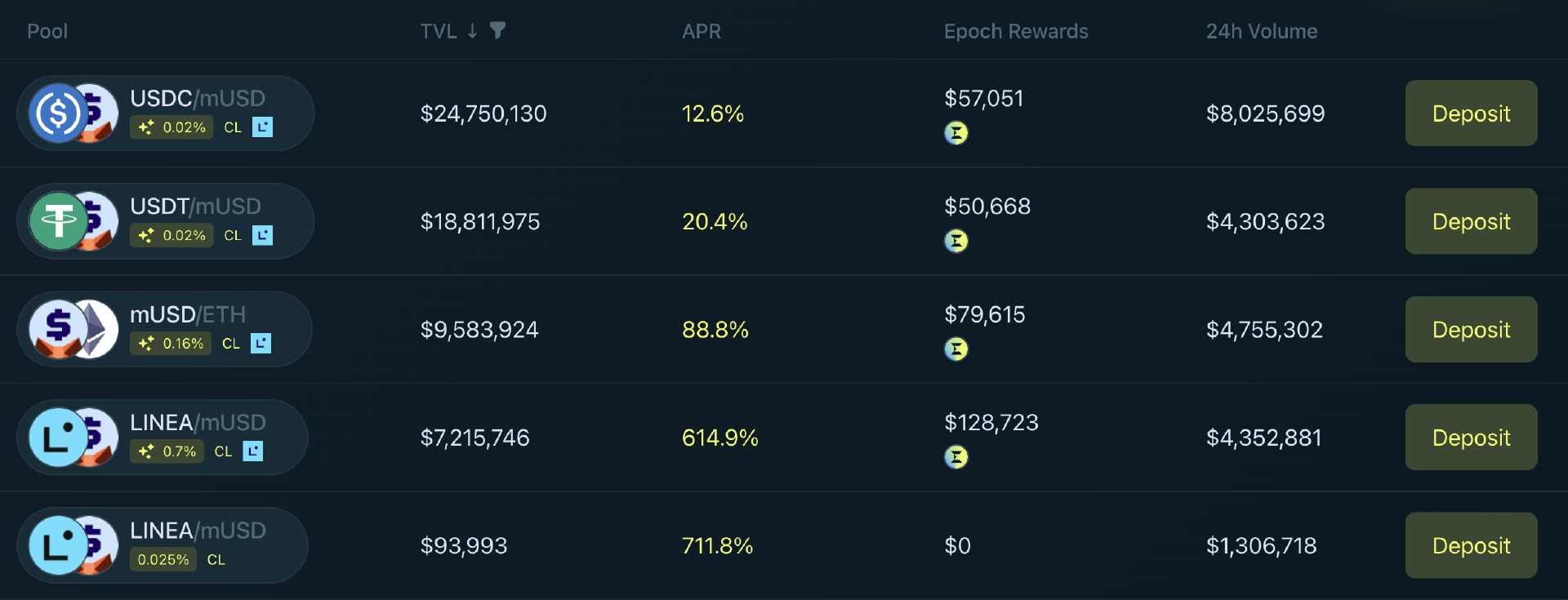 个人当下会比较推荐在 Etherex 上为 mUSD 添加流动性, 一是这可以同时有效使用 Consensys 的几个“亲儿子” Linea、MetaMask、mUSD、Etherex;二是即便 MetaMask 的空投预期落空,这也可以借 Linea Ignition 获得可观的挖矿收益。