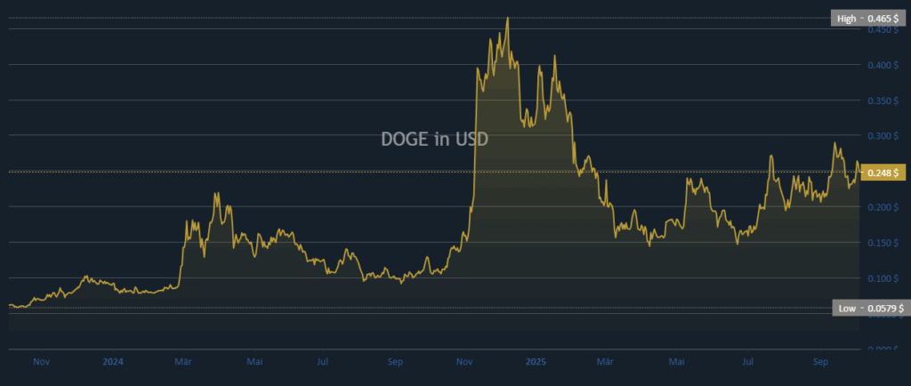从更宏观视角看,DOGE延续了其盘整后周期性上涨的历史规律。若能有效突破0.30美元,可能激发第四季度后期的强劲上涨情绪。整体而言,随着市场环境改善,该代币在稳定性与复苏潜力之间保持平衡。