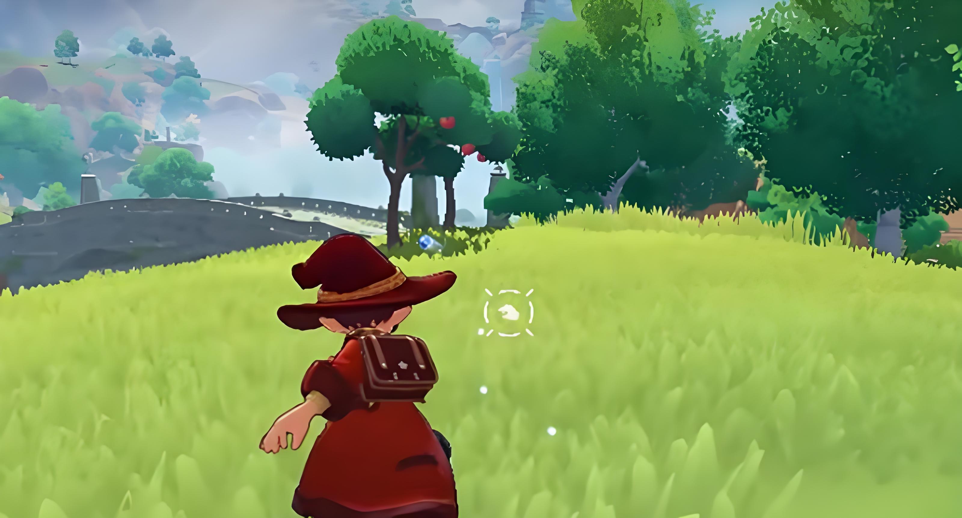 2、进入农场后沿中心区域前行,果树常种在中央或靠近主路径处,是结棕色果实的小型乔木,点击可出现摘果子交互按钮。