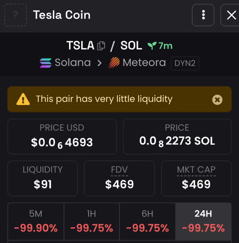 另一大持续存在的风险是「捲款跑路」。即便看似「信誉良好」的代币,也往往会在初始热度消退后崩盘。开发者与内部人员通常持有大量代币(有时会通过隐藏的「侧边钱包」持有),并可能在散户提供流动性时大量抛售。此外,对于流动性池由人工控制的代币,提供者可能会突然撤回流动性 —— 这意味着即使是小额卖出订单,也可能导致价格暴跌。而交易者往往发现为时已晚:当某个交易对的流动性被撤回后,其实际可用流动性可能仅剩几美元甚至更低。