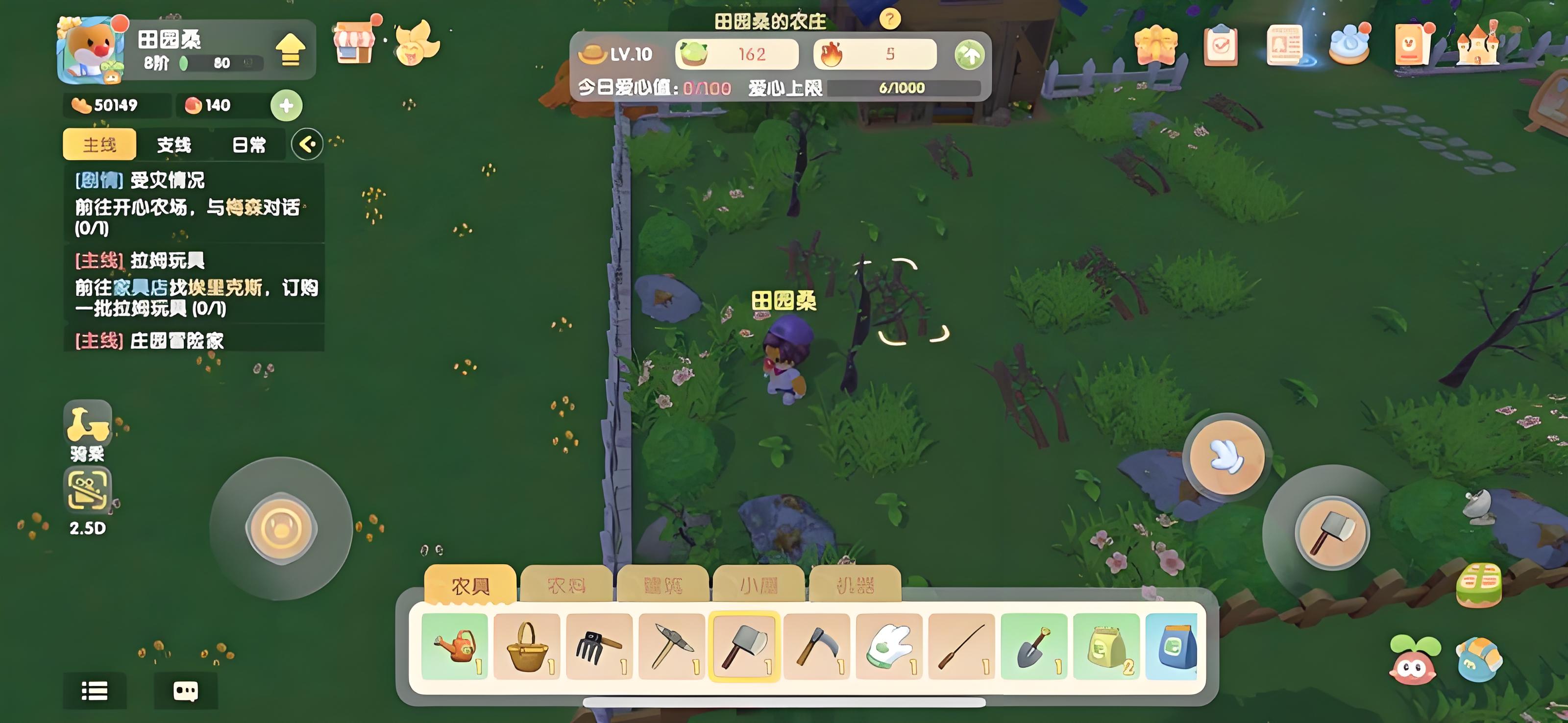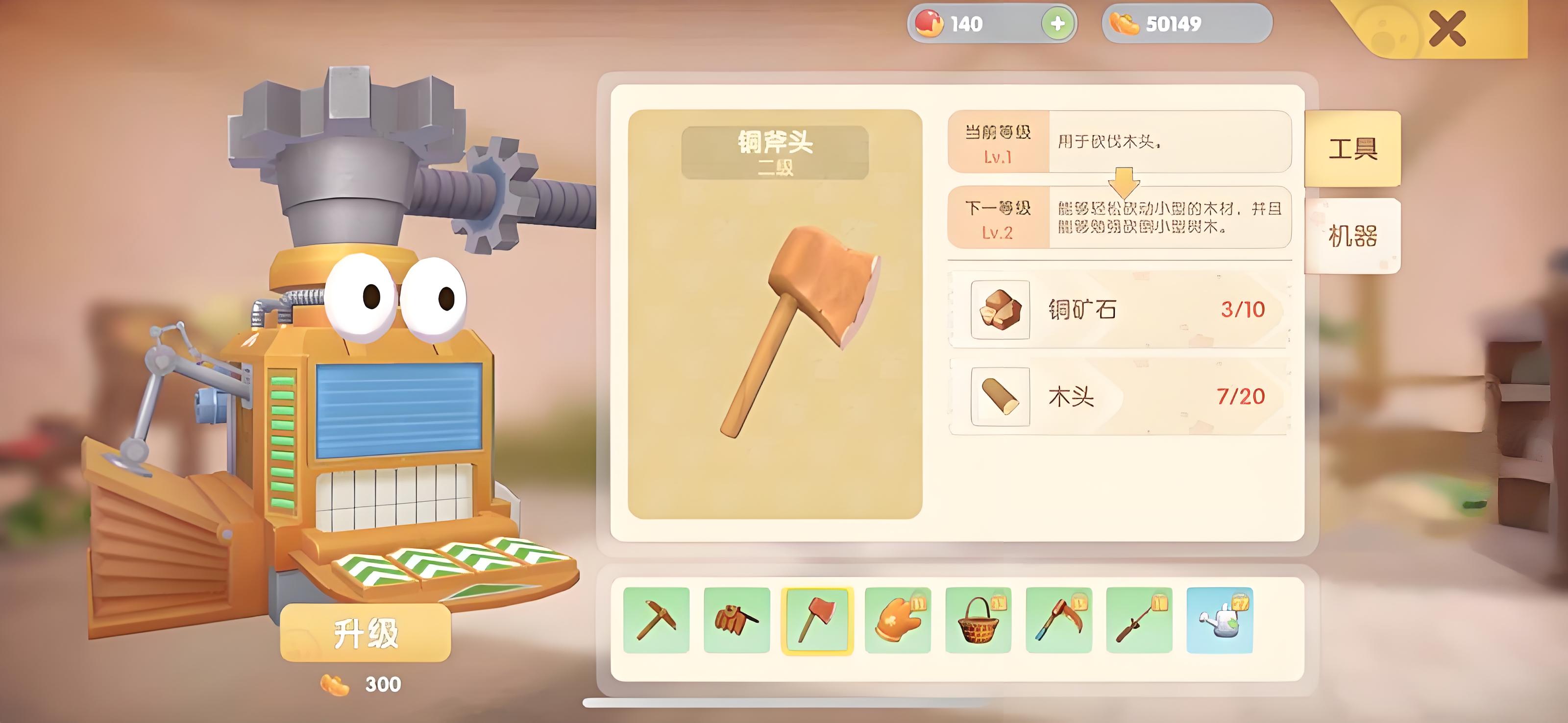 4、获取前需做好准备,将斧头在梅森小屋升级同时提升农夫等级,达到对应要求后才能更顺利通过砍伐树墩获取红木。
