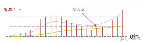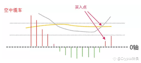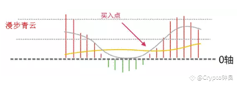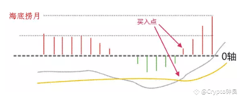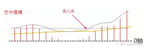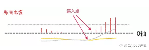 MACD在零轴下运行一个月以上的较长时间,DIF在零轴下金叉DEA后,两线粘合成一线、数值几乎相等,两线一旦开始向上多头发散,就可考虑买入。0轴以下的海底电缆形态的形成,多为股价在下跌探底以后,抛盘穷尽时呈现的底部形态,这时主力介入,进入压箱底吸货所致,应理解为择机入市。