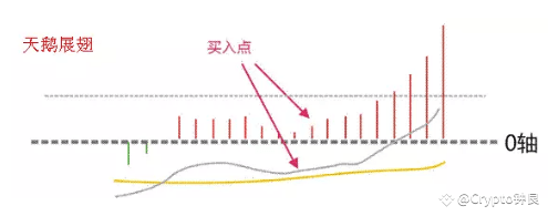 DIFF在0轴以下金叉DEA线,随后没有上穿0轴就回调,向DEA靠拢,MACD红柱缩短,但没有死叉DEA就再次反转向上,同时配合MACD红柱加长,便形成天鹅展翅形态。该形态的形成多为底部形态,是股价在下跌探底之后,抛盘穷尽之时呈现的底部形态,应理解为主力建仓区域,可择机介入。