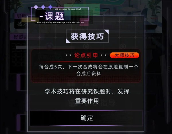 推荐带有无私和负责标签的导师,选定导师后获得导师的原始自带技巧,导师好感度是实验室升级和获得技巧的必须条件【导师无私属性,可以获得5个技巧】。