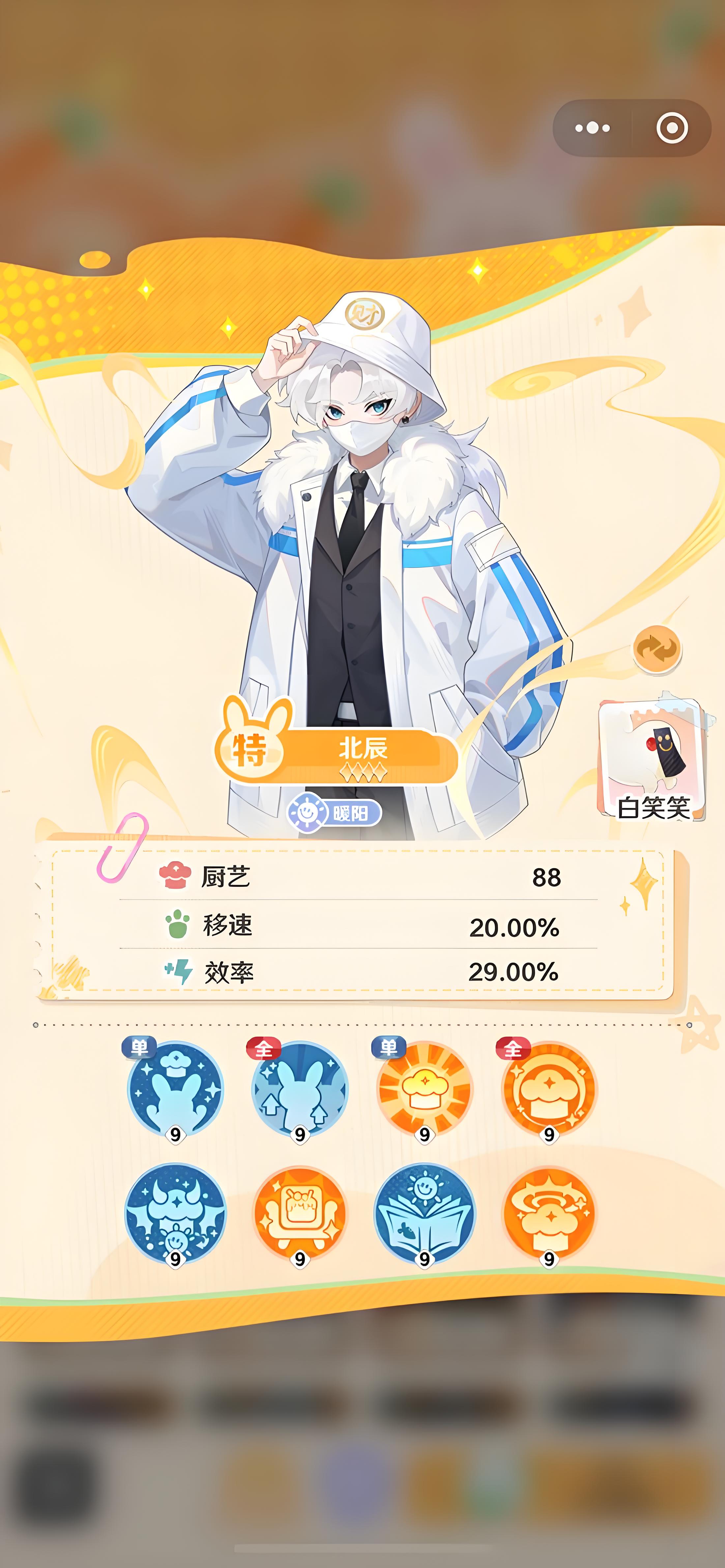 1、厨艺值达88属所有可解锁店员中顶尖水平,高厨艺提升美食制作成功率与质量,工作时还为全店店员带来厨艺加100的群体增益。