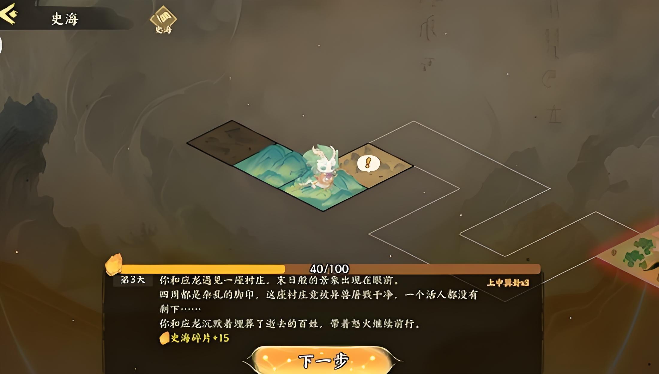 1、第二章开启需先完成识海第一章并将主线推进至逐鹿之战后,进入关卡需消耗固定体力,关卡为线性路径无分支,点击下一步即可。