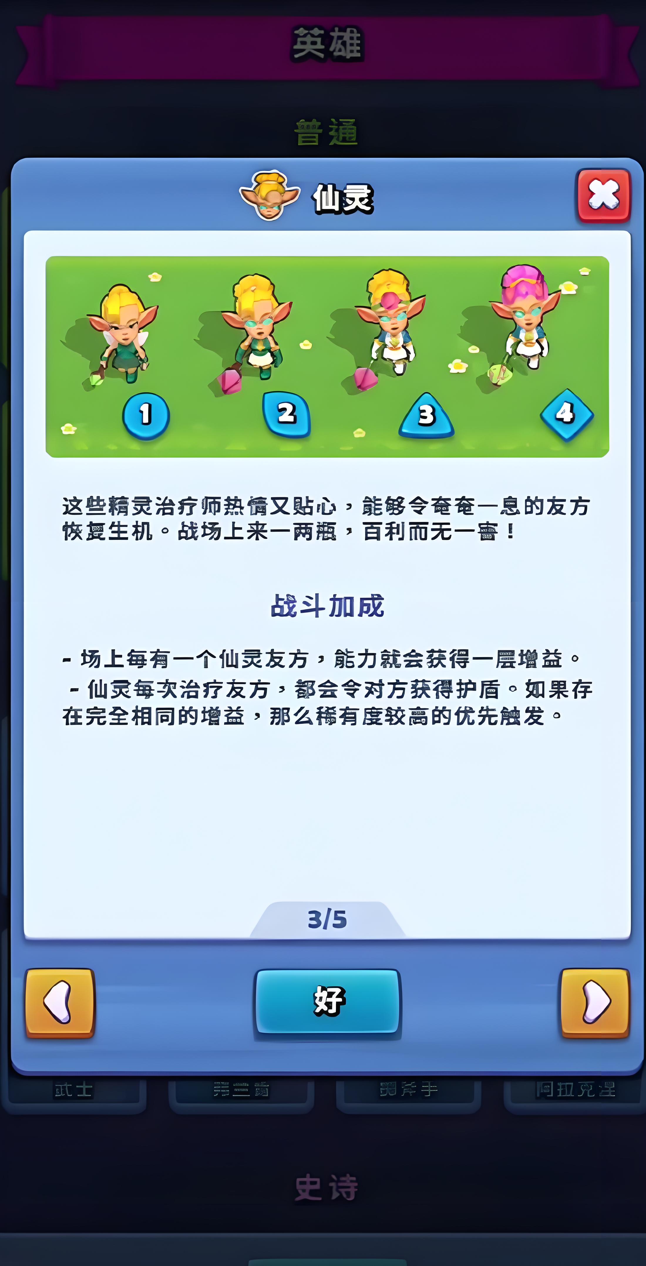 3、升级后获增益,场上有仙灵系友军时治疗附加护盾,五级时护盾转额外治疗量,多仙灵阵容中后期作用大。