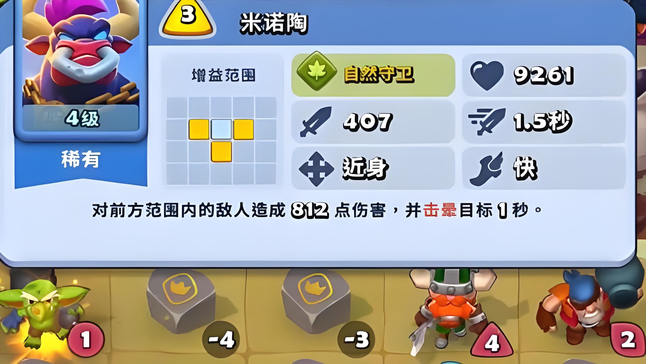 3、第二套是米诺陶加狮鹫加果冻骑士加歌星的快攻流阵容,米诺陶能撞飞敌人打乱阵型,狮鹫负责收割残血,果冻骑士前排抗伤。