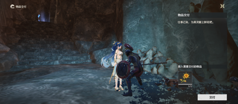 第一步,做完向永不凋谢的明天成就后,往后转,有一个雕像,互动。