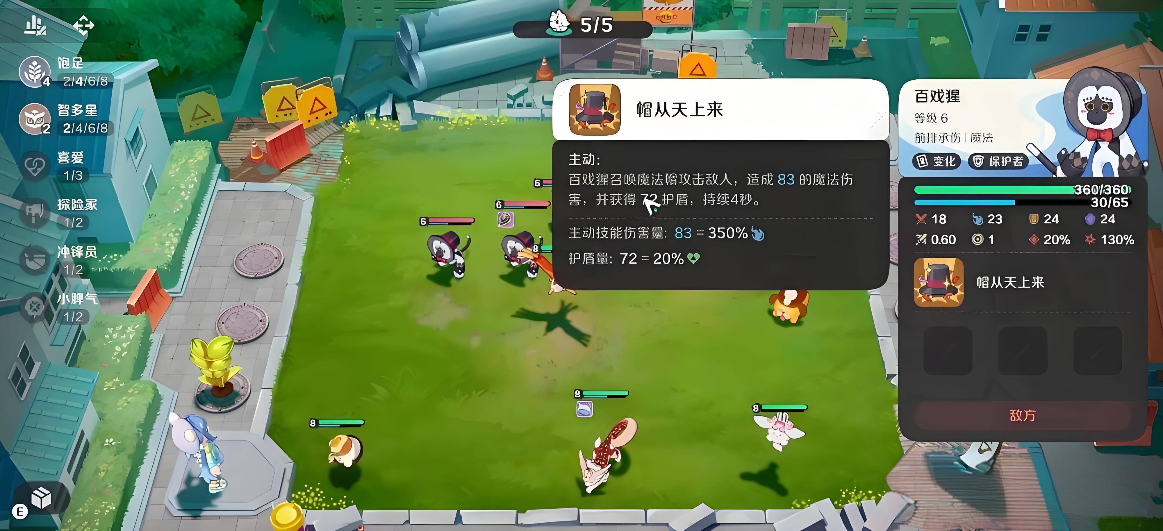 1、百戏猩定位前排承伤精灵,主打魔法伤害输出,元理归属变化类别、特性为保护者,符合前排肉盾常见定位,能在前排为队友吸收伤害。