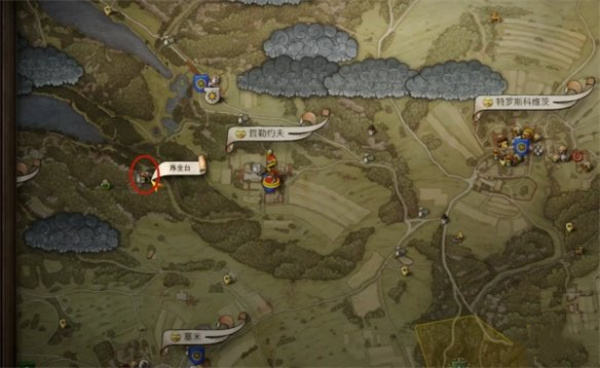 首先我们需要在地图中找到女草药师的小屋,它的位置在“哲勒约夫”的左侧。