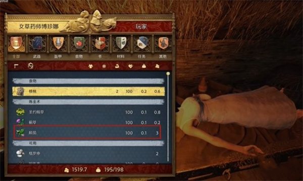 接着我们潜入小屋中,将一楼的女草药师击晕,接着从他身上就能发现很多颠茄。