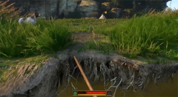 然后来到营地附近的池塘边爬上去然后在后退下来,重复这个操作。