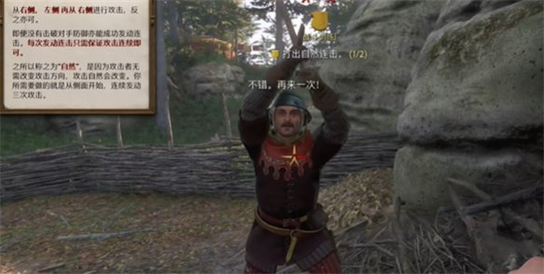 2、第一阶段的任务很简单,跟随教程完成自然连击和水平斩击,来到第二阶段。