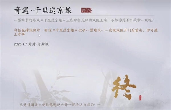 在开放世界武侠角色扮演游戏燕云十六声中有一个奇遇任务为千里送京娘,部分玩家不知道这个任务应该怎么做,下面就为大家带来燕云十六声中千里送京娘奇遇任务的攻略分享,有需要的玩家可以参考。