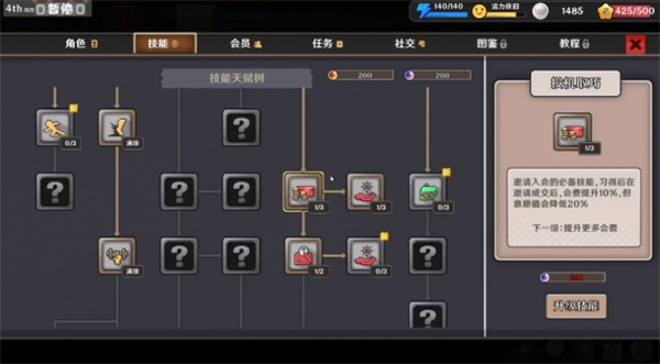 3、有了货币后,我们就可以去解锁技能了,把天赋树都开了,这样你的说服能力就能变强。