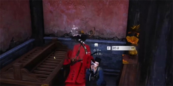 1、首先在地图上找到【蹊跷】图标过来后对话房顶的NPC【白及】;