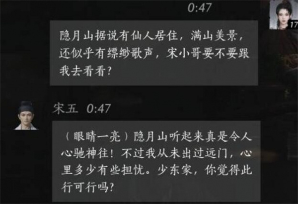 2、然后他就会对隐月山产生兴趣,然后要求玩家和他一起去。