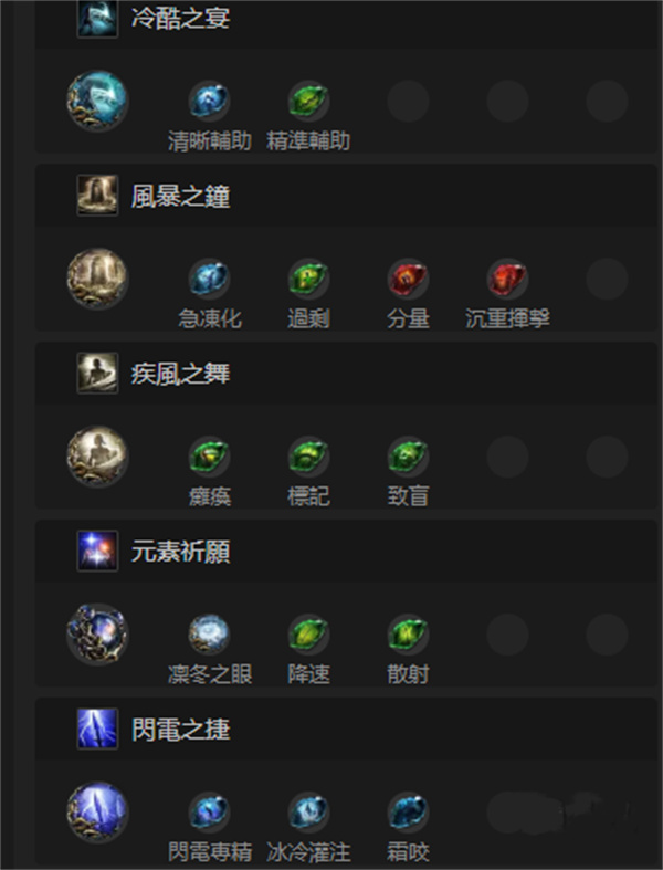 光环技能优先级:闪电之捷、战斗狂怒、冰霜之捷、疾风之舞、冷酷之宴、元素祈愿