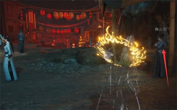 2、时间调成亥时去鬼市,在柱子下面找到并对话【柳三郎】;