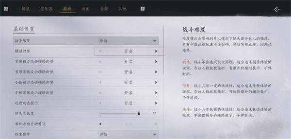 随后在基础设置的第二项就能找到“辅助卸势”选项,将他开启即可。