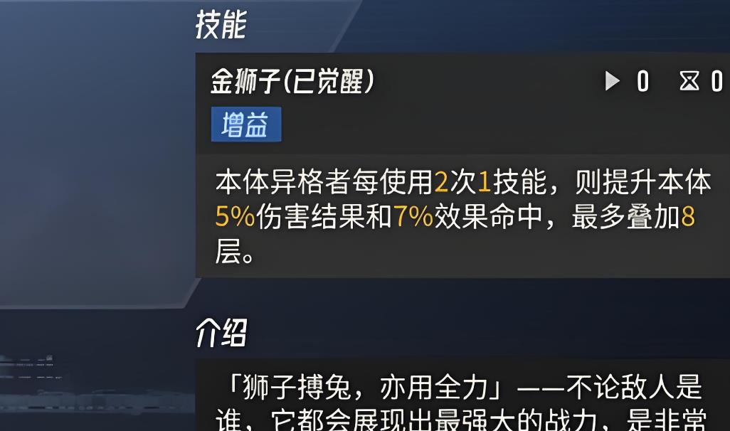 4、金狮子存在前期输出乏力的短板,依赖层数叠加释放潜力,战斗初期缺乏辅助支持易输出断档,不建议单独作为开荒主力使用。