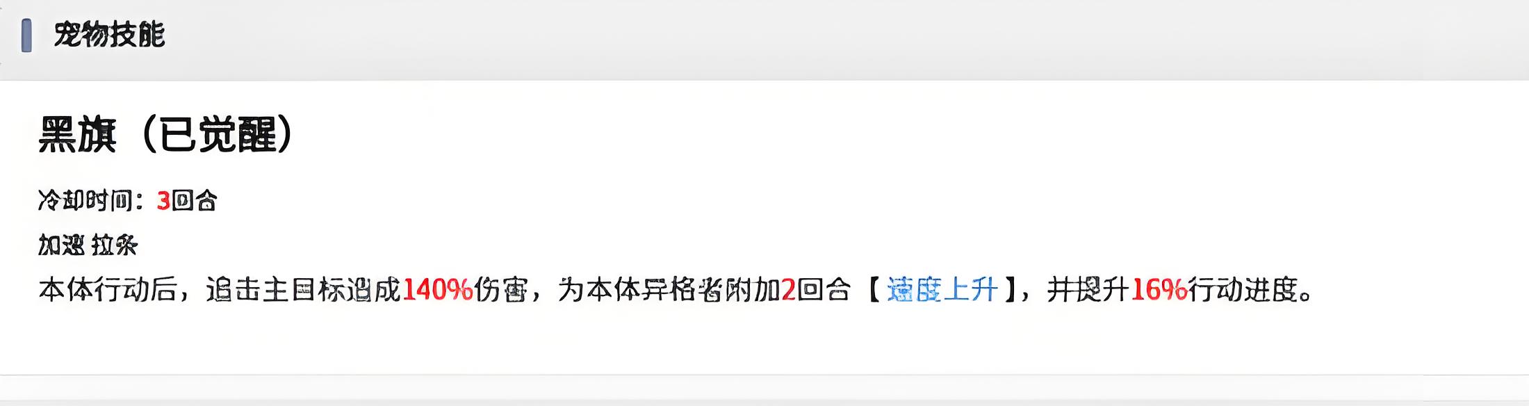 2、黑旗核心能力是追击效果,队友完成行动后它会自动追加攻击锁定敌方主单位,造成140%攻击力伤害,还能补足伤害打断敌人技能节奏。