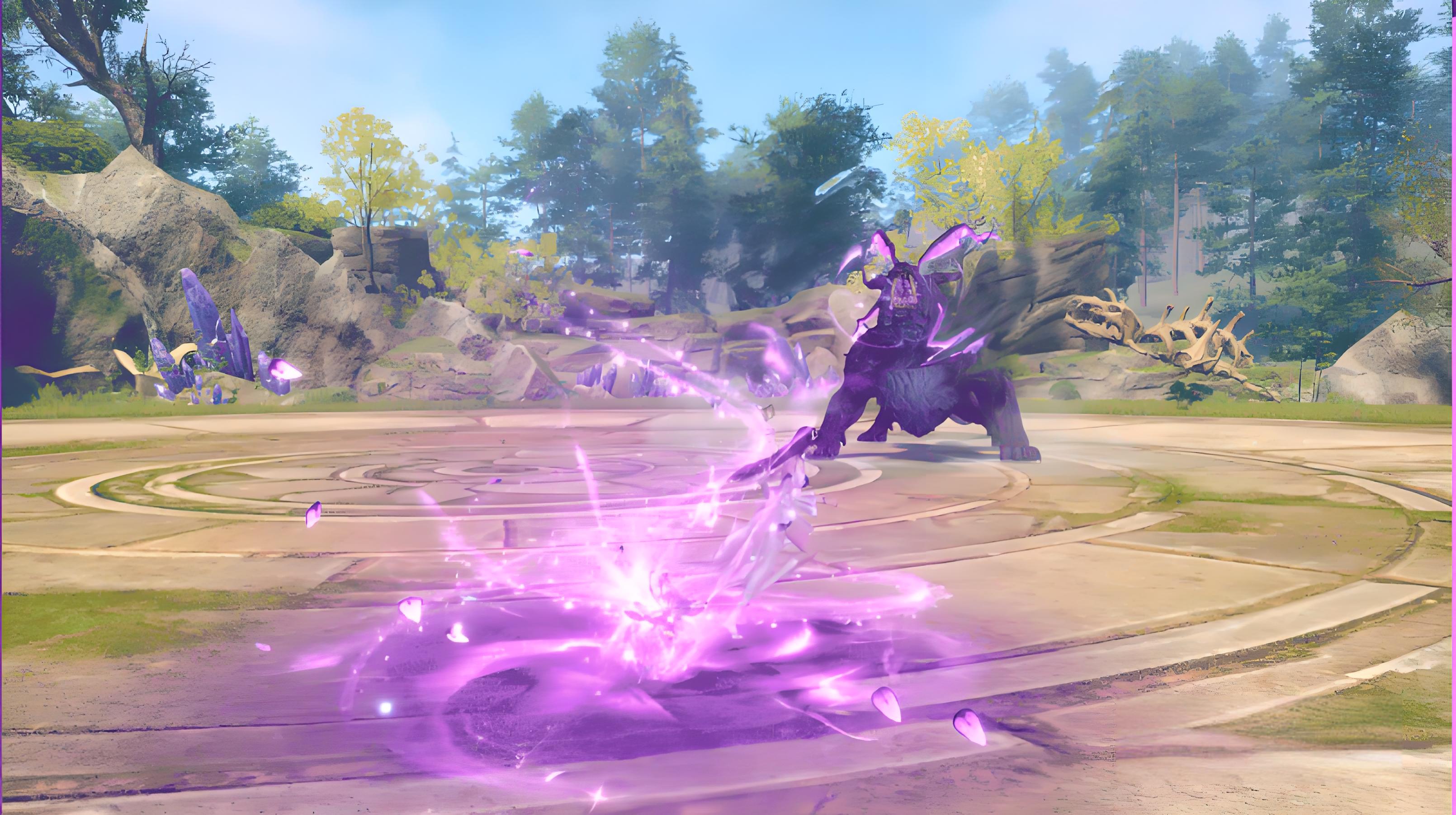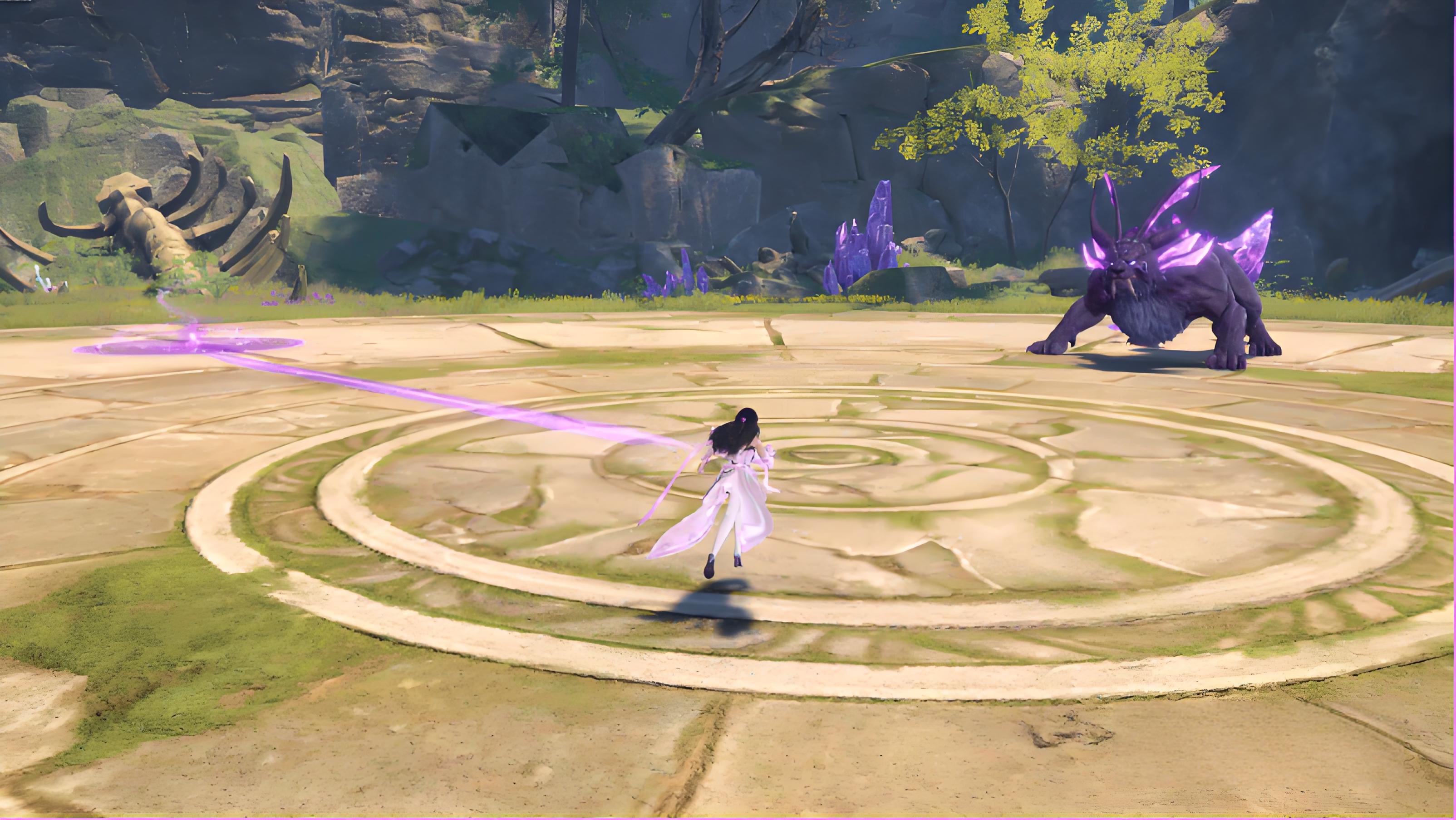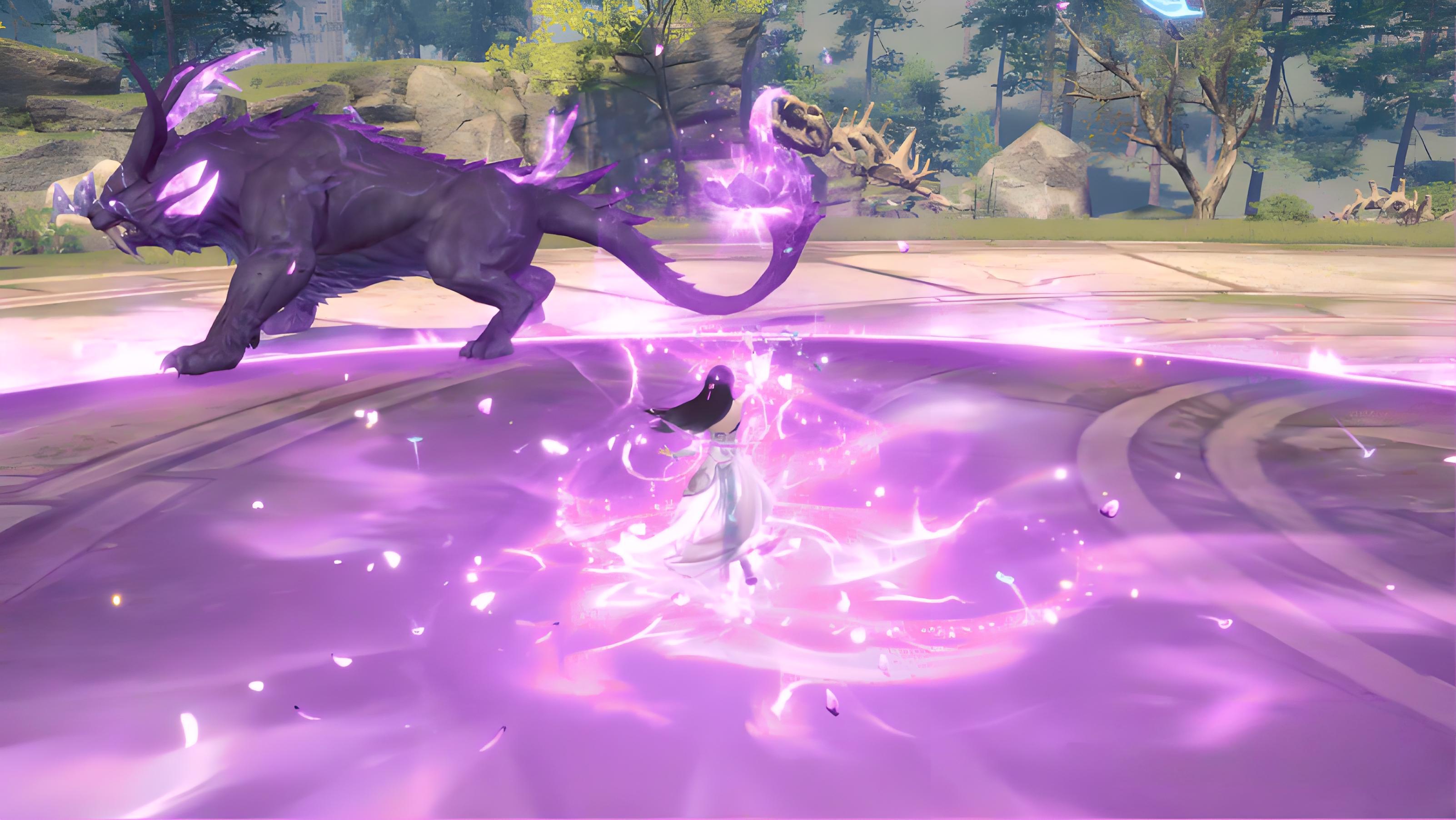 1、普攻玉拂花通过吹笛子引导花香攻击,造成少量伤害,空中施放时自身缓缓下降并向前持续释放音波。