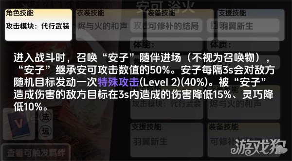 安可以【灵巧】与【集中】为主要属性,直接影响技能释放频率与法术输出强度。