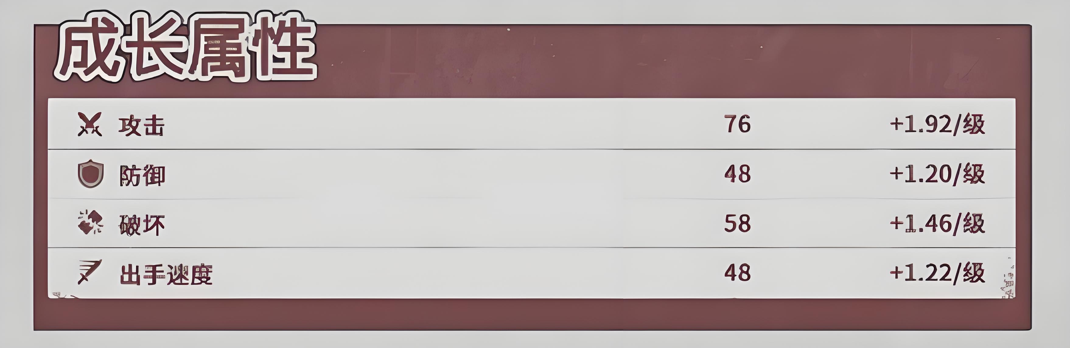 3、瑟拉成长属性涵盖攻击防御破坏出手速度等方面,这些属性会随等级提升而增长共同构成她在战斗中的基础能力表现。