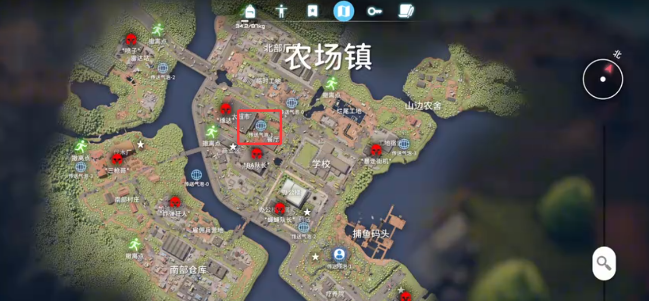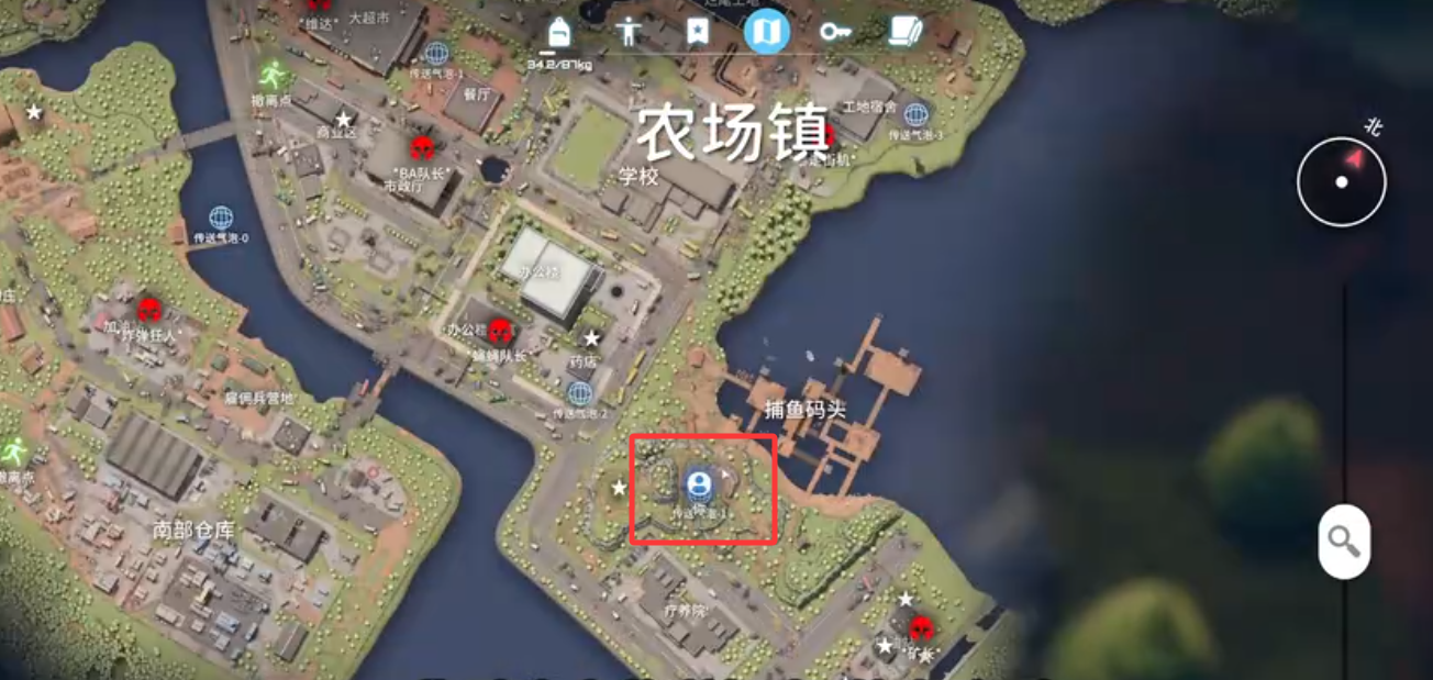1、农场镇的神秘商人位于图中传送气泡1的旁边