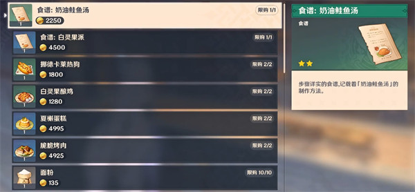 1、奶油鲑鱼汤:在npc卡嘉处购买获得。