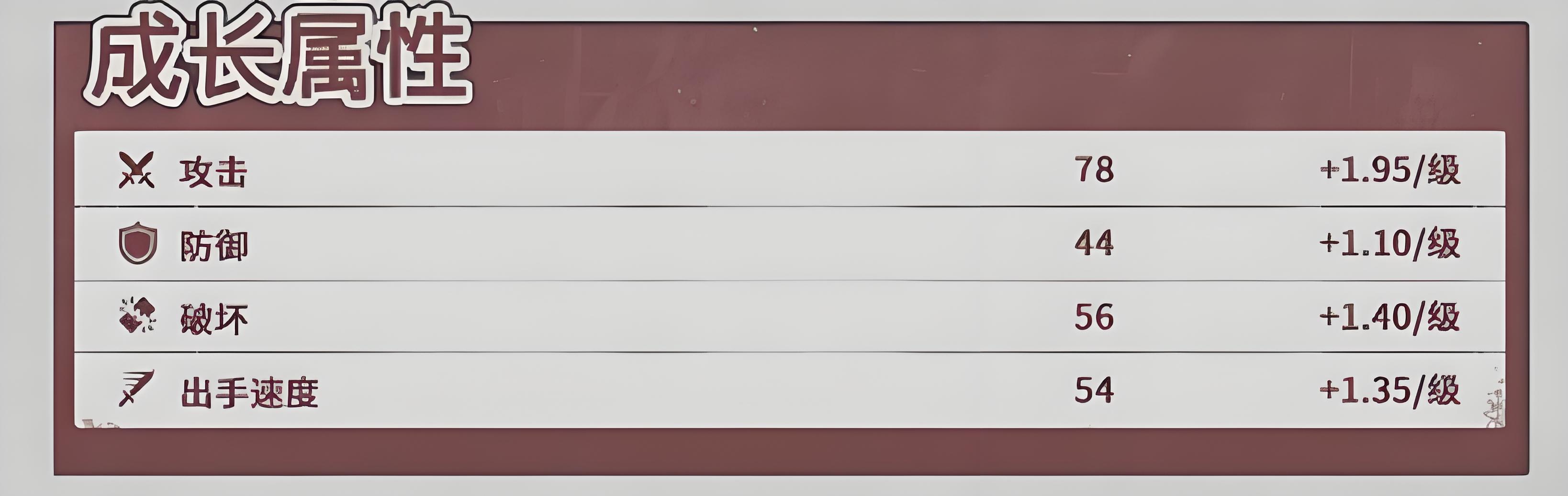 3、成长属性斐拉培养优先堆攻击与速度兼顾破坏,防御优先级较低,通过这样的属性分配可最大化输出能力,适配输出核心的定位需求。