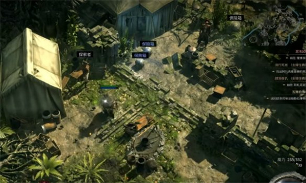 接着我们往地图的右上方走,可以找到“动乱营地”里面有探索者NPC和一些保险箱。