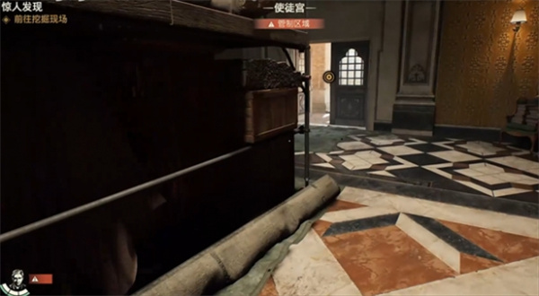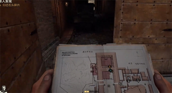 移动至使徒宫旁侧的挖掘现场,径直进入右侧的建筑内部,在建筑右侧角落的桌子位置,可顺利拿到【挖掘现场安排】,随即进入剧情片段,文图拉神父会前来巡视一番。