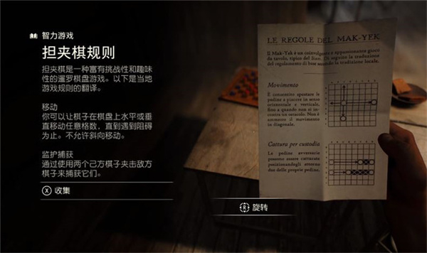 在桌子上捡起《洛伦佐的挑战》和《担夹棋规则》两张笔记,以开始这个谜题。