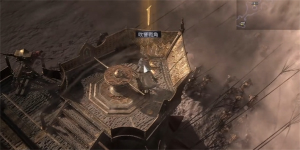 3、在这里我们会看到吹响号角的提示,点击互动即可开启下一步任务。
